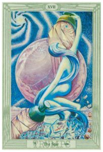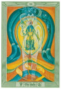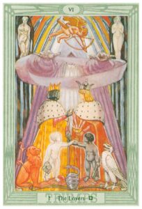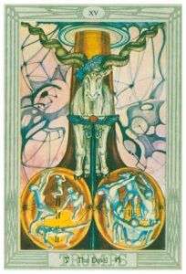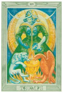 There is a school of thought that suggests that survival after death is not a given but is something to be accomplished. Most of ourselves is bound to dissolve back into the Great Brew, but something of soul/mind, if seriously groomed, may have a chance to pop back up somewhere. Crowley was nothing if not persevering, never failed to honour his motto: ‘Perdurabo’: ‘I will endure until the end’. Ample example in his diaries vouch for this extraordinary endurance: The long and arduous tasks involved in the Abramelin ritual, the endless in- and evocations in Paris or on the plains of China, constant performance of visualisation, preferably in the void of orgasm, his detailed documentation on dosage and effect when administering his brain-change agents. If there is any consciousness with the stamina to kick on again after the final journey, it has got to be his. He may have created a Moonchild after all. So it was an interesting idea for both him and Alys to play with for a while.