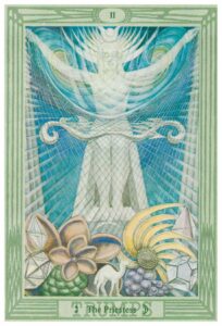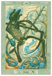 Bookshop day. Favourite of course, the little occult one, just off King’s Cross. Amidst the ordered chaos of the window display the Thoth Tarot Deck is leaning against a skull, nudging: